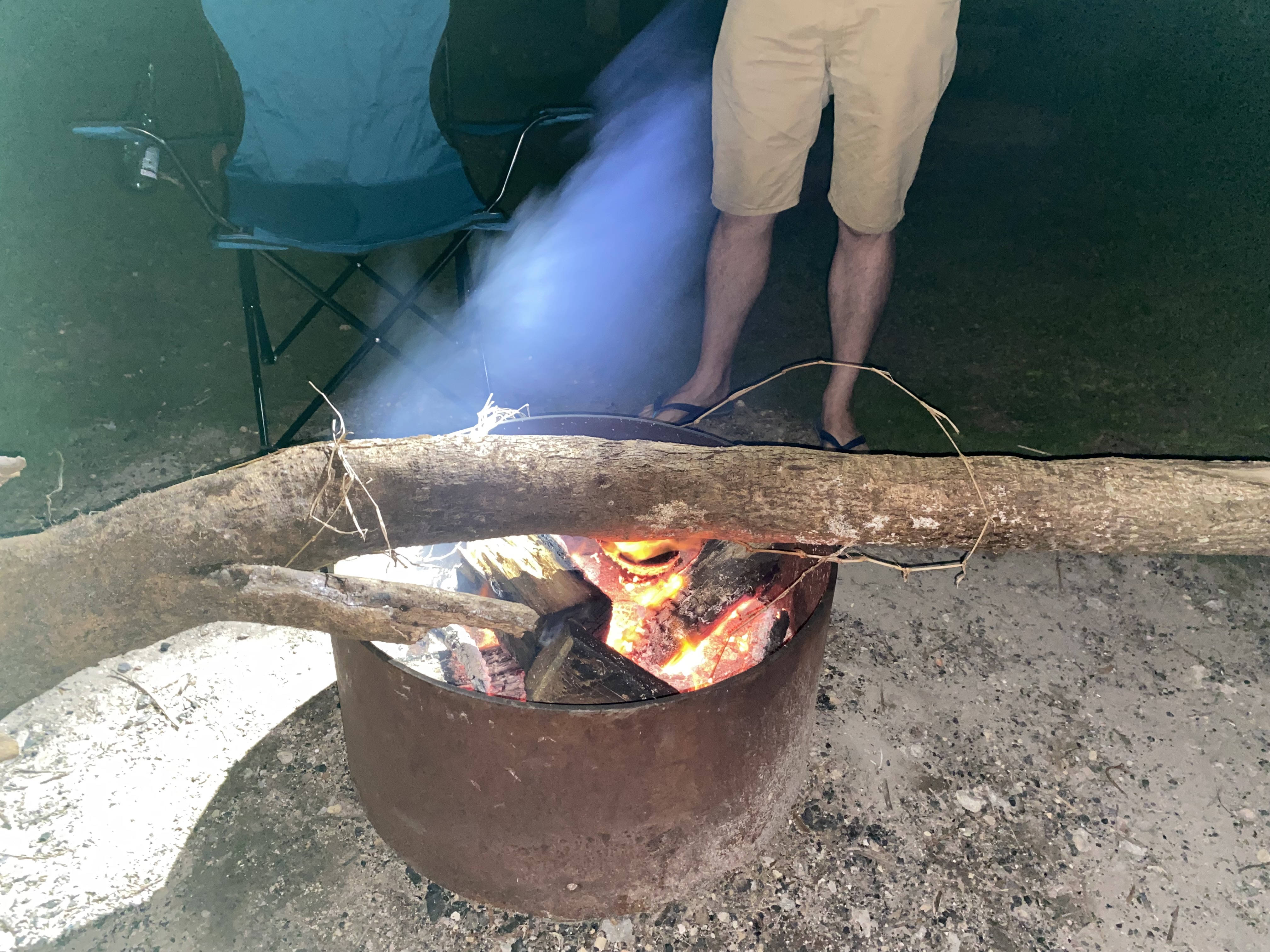 There were day campers along the river, but the GOW camp was a little further up. There was not a single soul there. I set up my tent, nestled in a little clearing that barely fitted my tent. I sat on a little purpose-built platform, warming myself in the sun and writing in my diary when a day camper wandered up there. We chatted for a while, and he asked if I’d like to join him for dinner. Saying that I had plenty of food of my own, I happily agreed to come down at 5pm, for a chat.