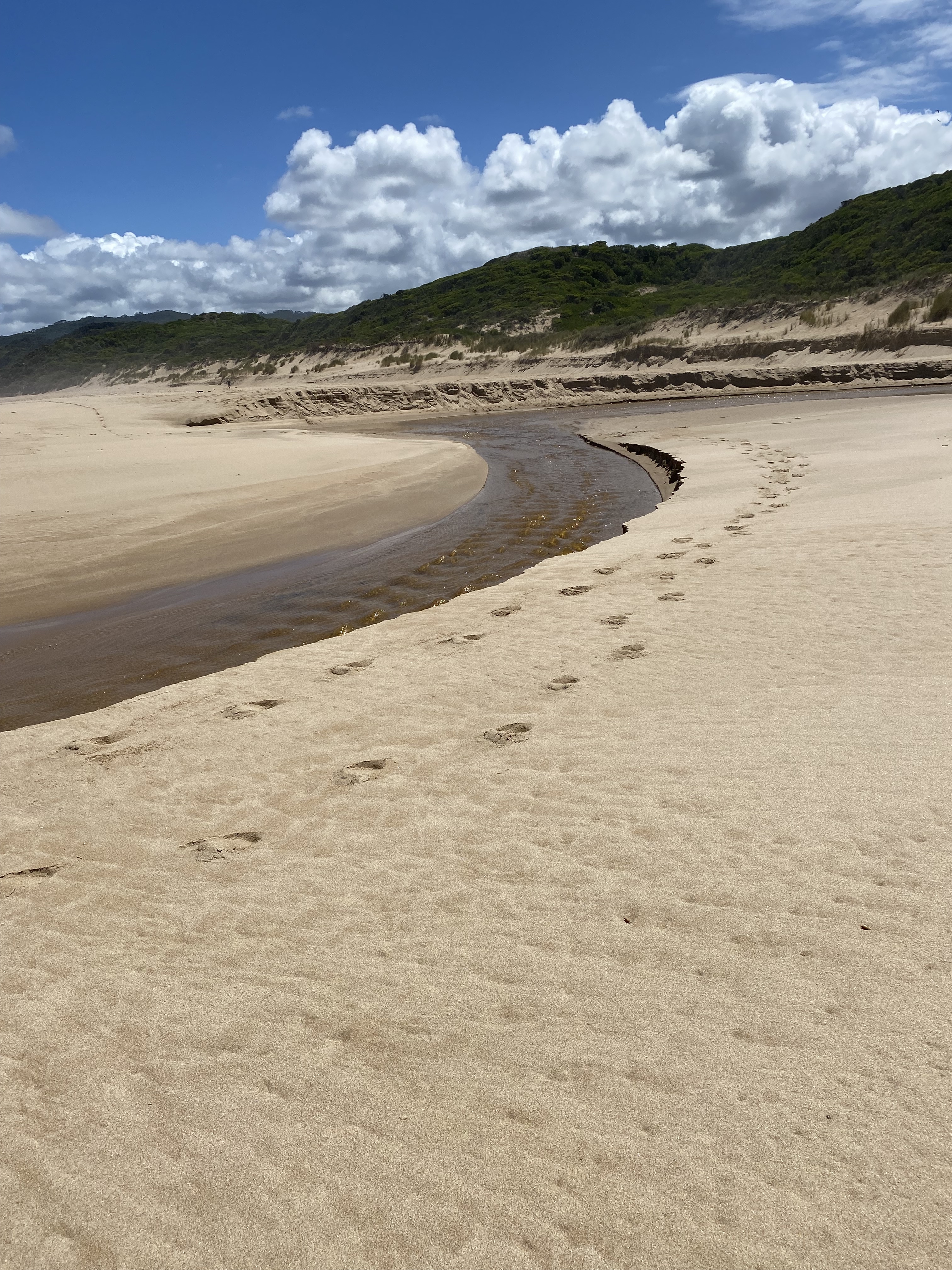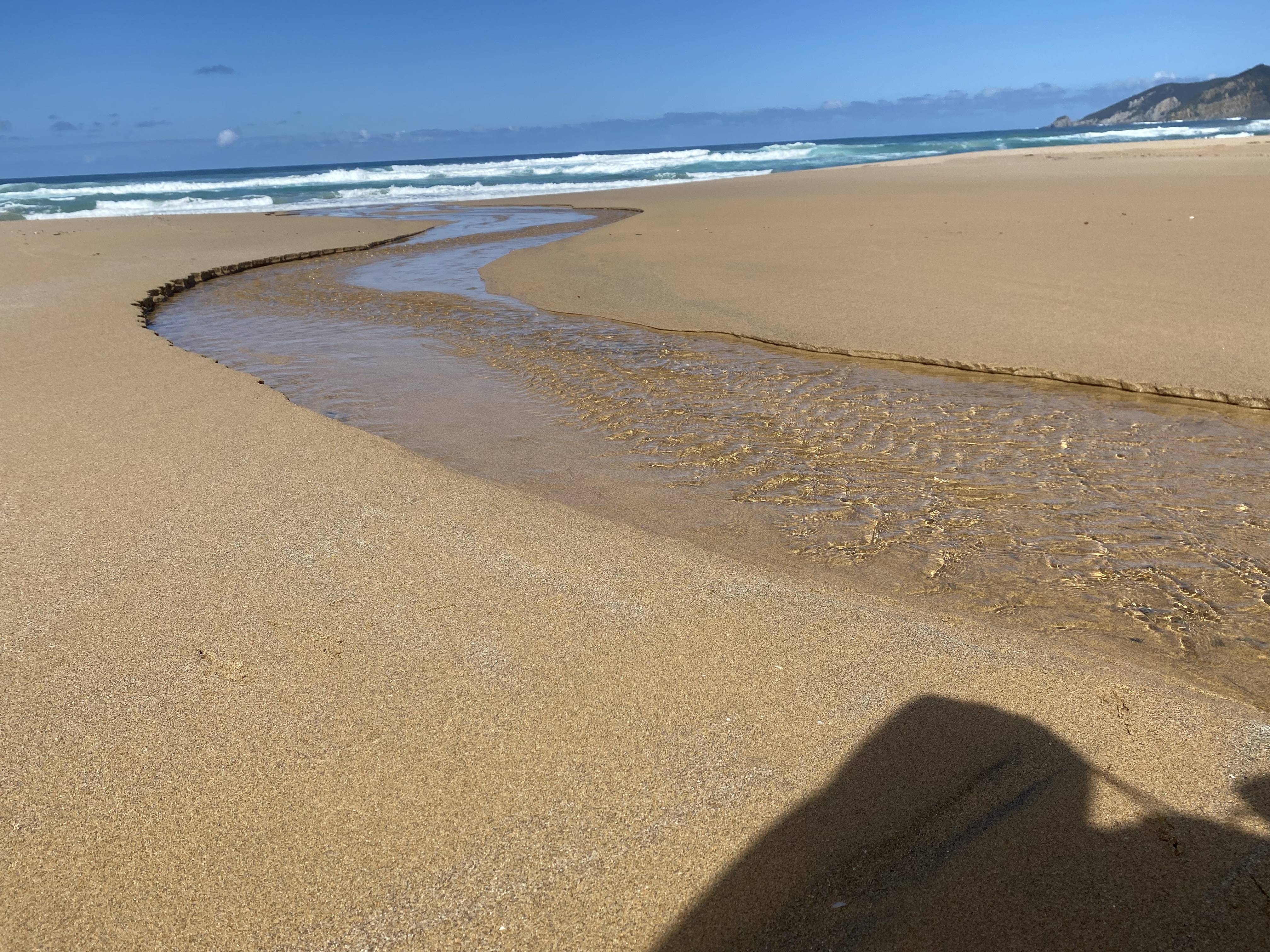 As I rounded the corner, the wide beach stretched out ahead of me.  Hiking in the soft sand for 2km was not easy, with boots and a heavy pack sinking me further into the sand. I should have taken my boots off as this might have helped, but I was worried I wouldn’t be able to get them off – or back on again with my pack on.