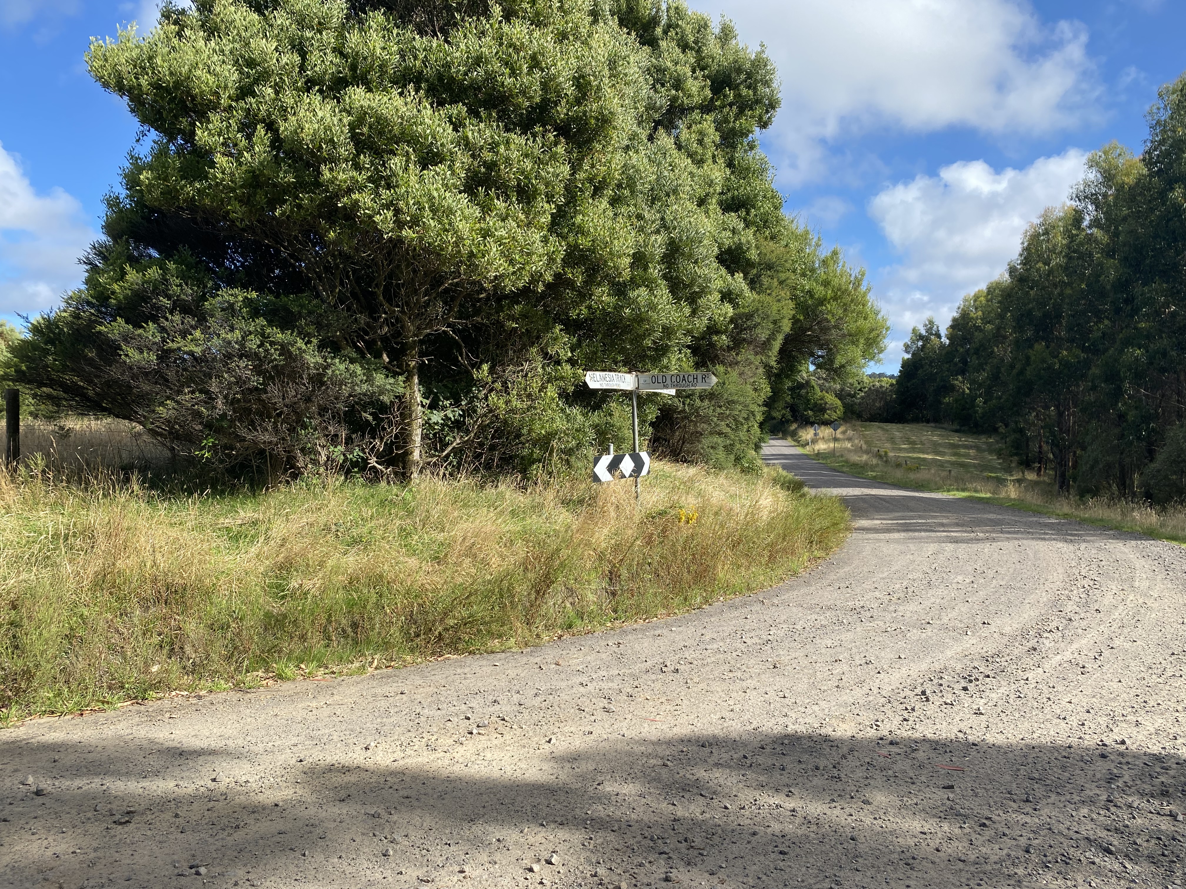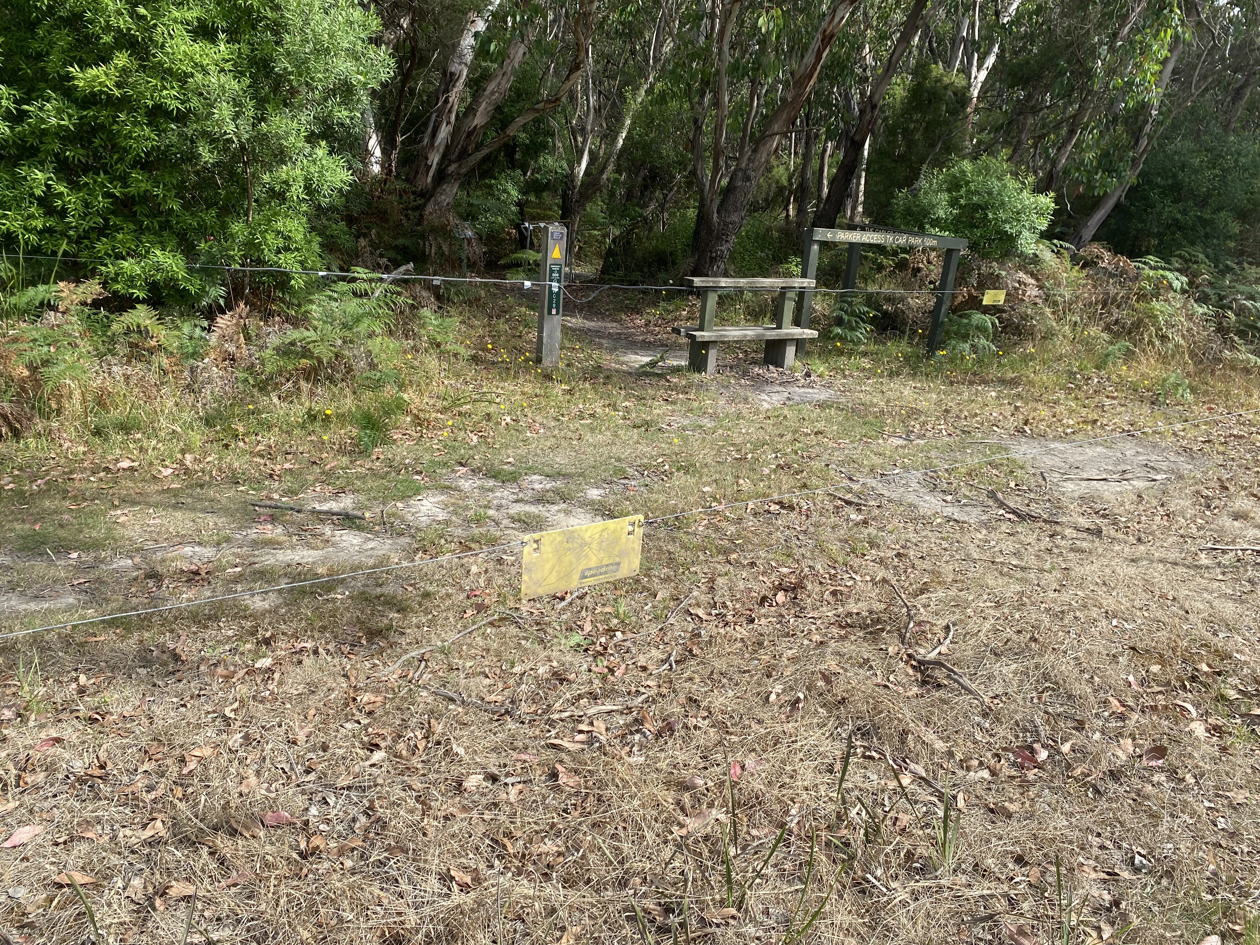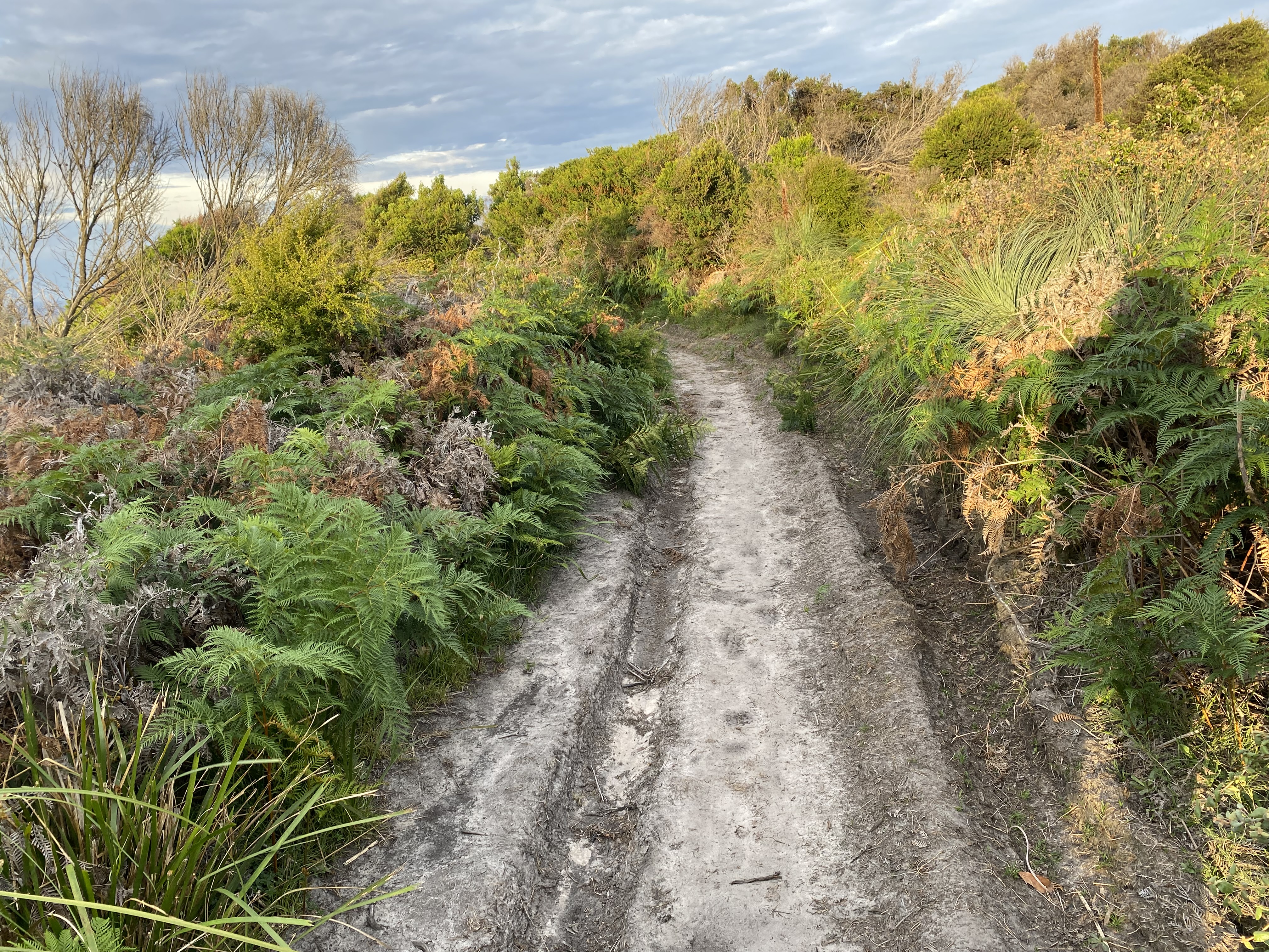 The terrain changed completely once I reached Parker Road. The Guidebook directed me to “walk along the road until the track led into the forest again”. I saw the forest entrance coming up but noticed a wire at a mid-thigh height which separated me – on the road – from it. Luckily I decided to wait to cross it till I got a bit further along because I thought it looked like an electric fence and I could see there was a little sign hanging off it. It was an electric fence. Apparently, I’d missed a track marker directing me nearer the farm at the top of the road and I was on the wrong side of the electric fence. I couldn’t go over or under it with my pack. So I took my pack off, pushed it underneath, and then rolled under it like I was in the Special Forces or something. I was quite glad no one was watching.