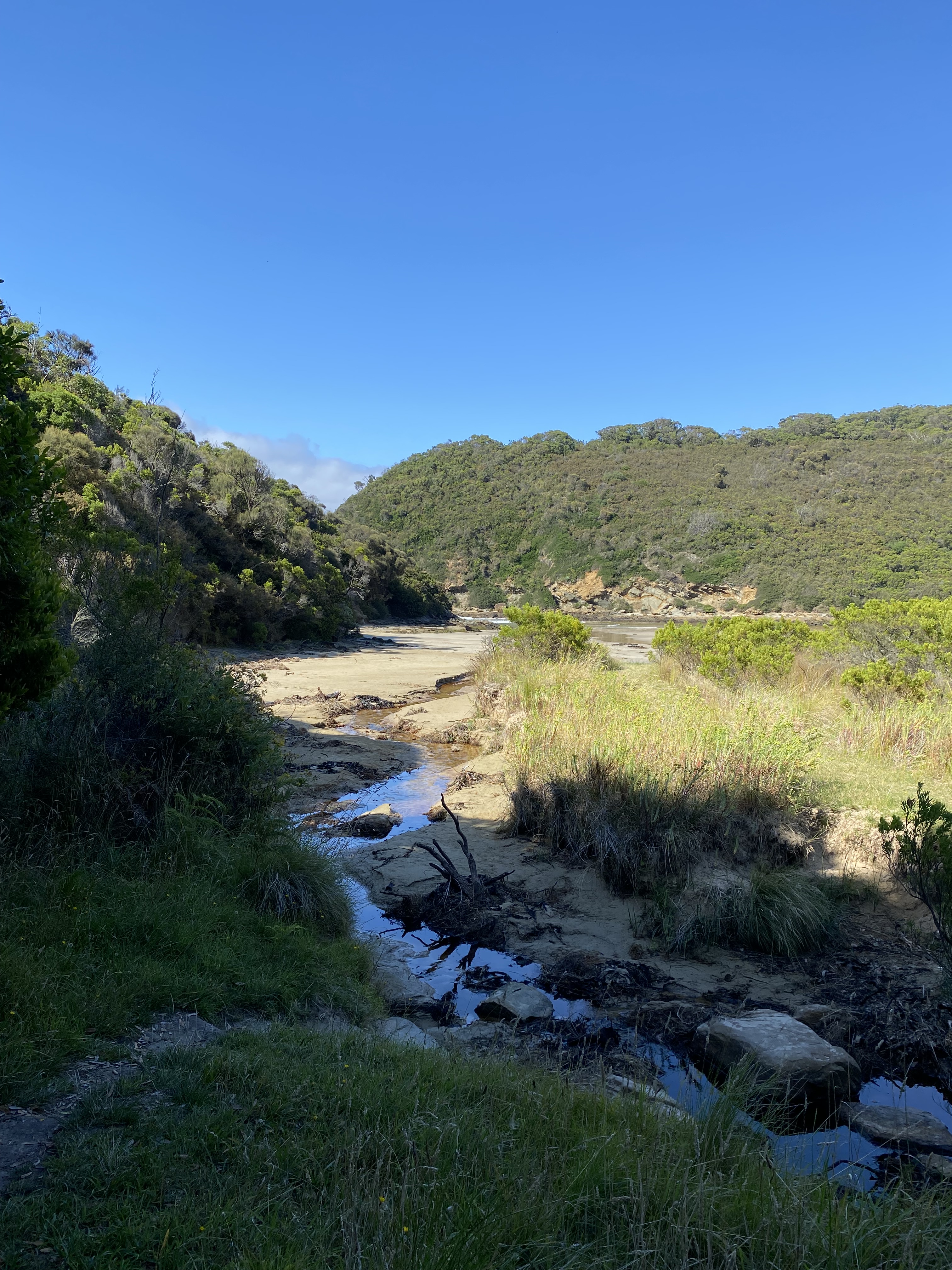 In the morning, I went down to say goodbye to my new friends before heading back uphill to get back on the Great Ocean Walk track. I was aware that I would need to time my hike around tide times, for the Jonanna beach crossing.
