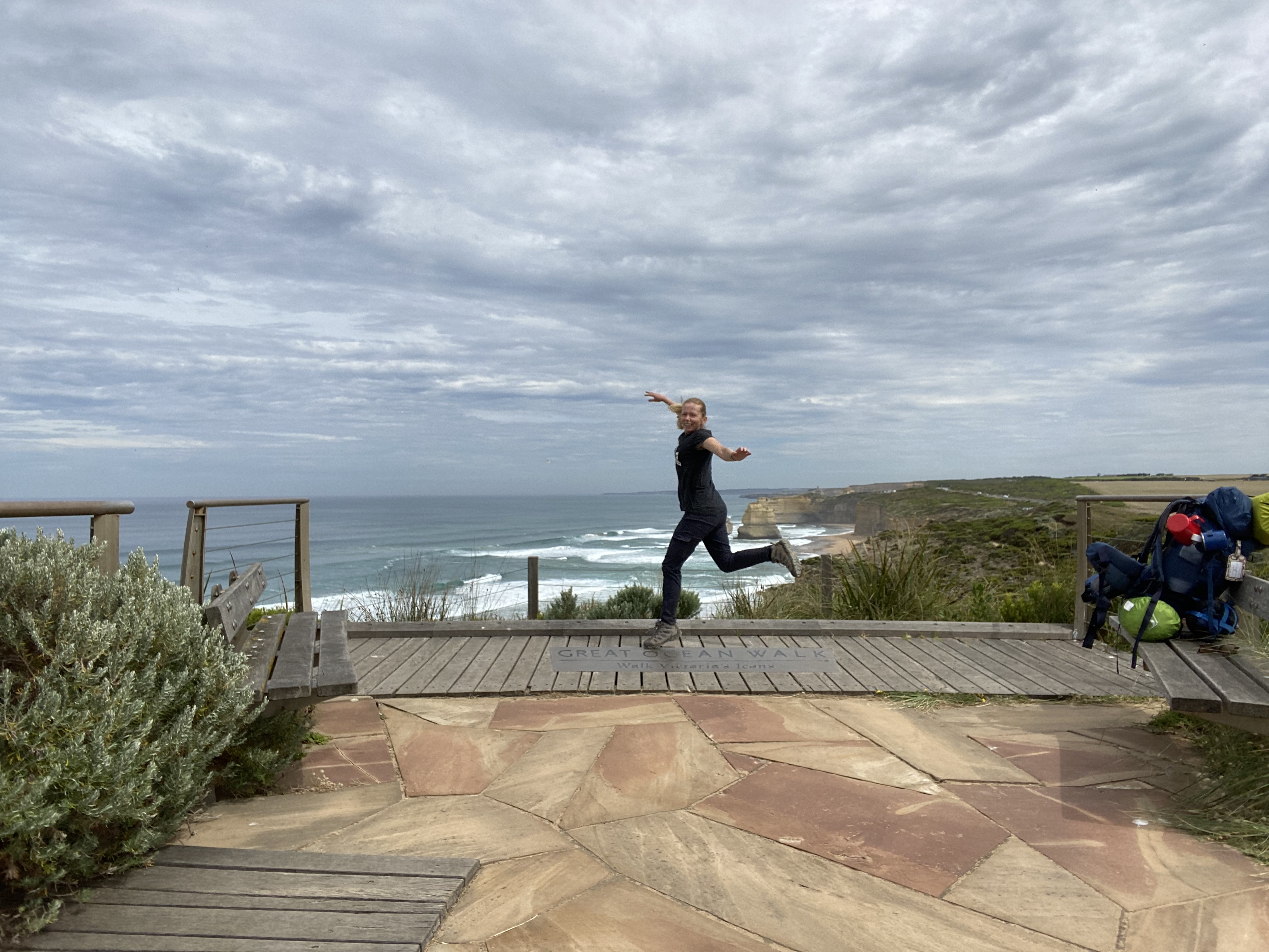 I stopped at the official GOW lookout, called the Walk Victoria’s Icons Lookout. I was on my own and spent a good half an hour posing and making a fool of myself jumping around like a crazy person. Talk about feeling pretty freakin’ happy with life.