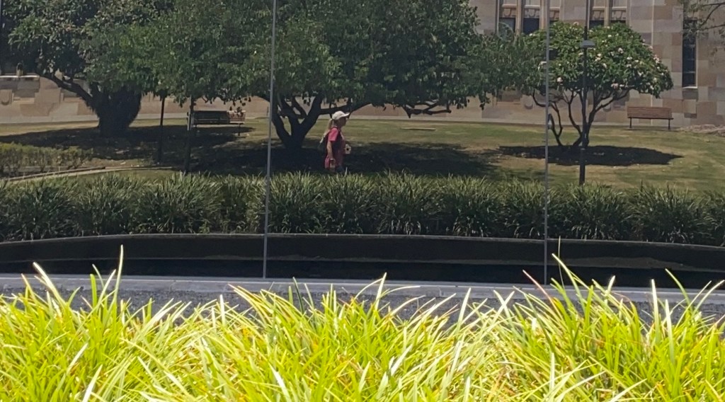 There are those hopes and dreams again. I smile at a young father trying to keep his toddler dry by a fountain. He gives up quickly. By the time I reach them, the boy is soaked and delighted. The scene makes me smile even more, so I stop for a short water break under a tree – an excuse to linger a while longer. A woman joins them, and for a moment the father looks uncertain, until the woman laughs and lifts the dripping child into her arms.